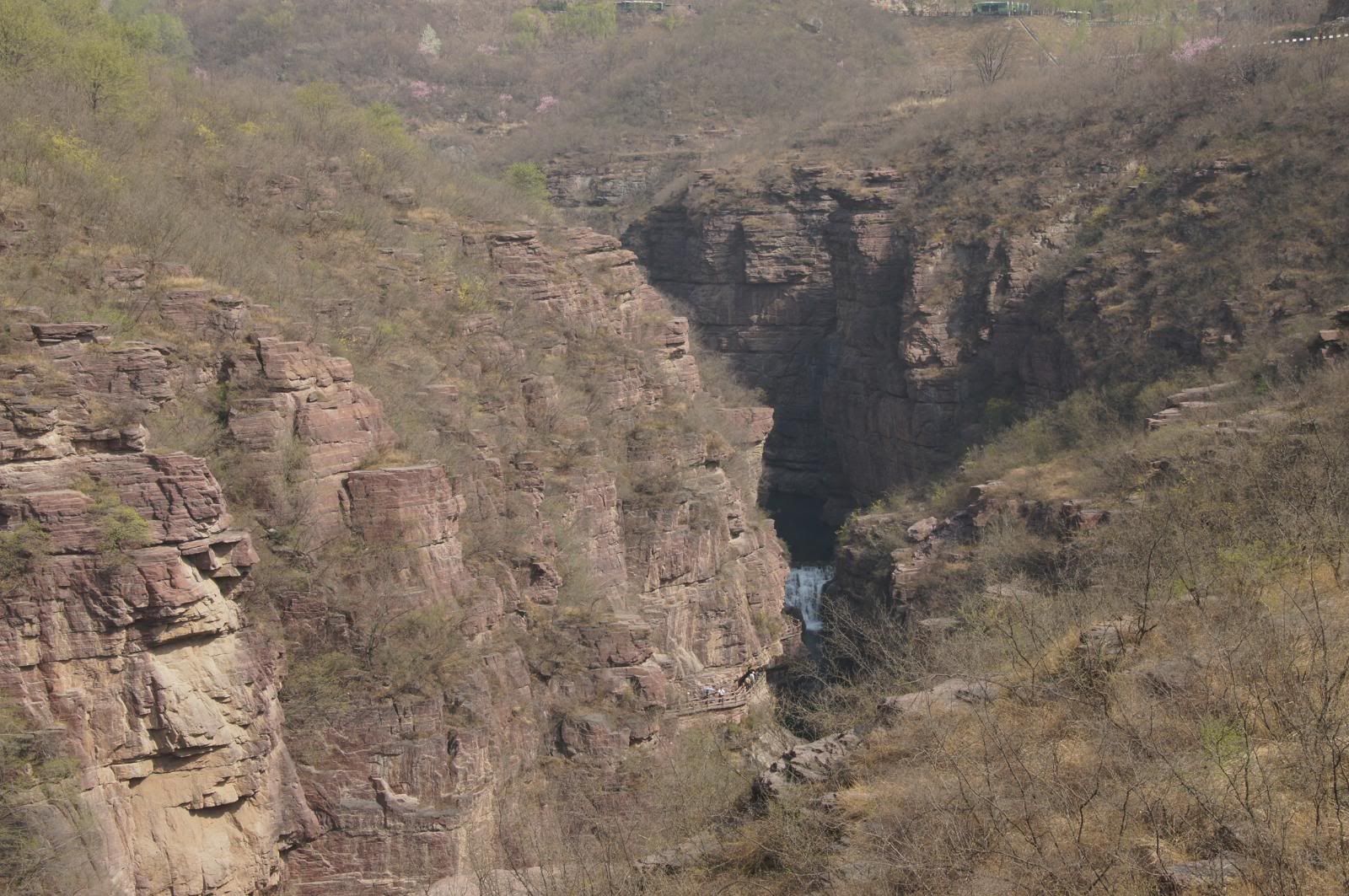 红石峡,又称“温盘峪”位于云台山景区子房湖南端,是一处长约1公里、宽三至二十余米的石峡。峡谷内最宽处不过20多米,最窄处不到5米,峪深80多米,在我国众多峡谷中,以其景观的纤巧、婉约、神奇、瑰丽而独树一帜。它集泉、瀑、溪、潭、涧诸景于一谷,融雄、险、奇、幽、秀诸美于一体。温盘峪景区低凹于地表之下,两岸峭壁山石,仿佛鬼斧神工雕琢而成,又好像名山大川浓缩后的精华,峭壁间时有一挂挂珠帘似的泉瀑争相倾泻,流水急湍,瀑声若雷,若蓝天丽日下会映出一道彩虹,于1公里之内,富集“逍遥石”、“相吻石”、“灵龟戏水”、“双狮吸水”、“幽瀑”、“穿石洞”、“孔雀开屏”、“棋盘石”等景观,览之步步奇景,观之美不胜言。云台山温盘峪,享有“盆景峡谷”的美誉,被园林专家称之为“自然山水精品廊”。温盘峪是大自然的产物。1亿年前,震旦纪时期,地壳还在运动,山体裂缝成隙,而有云台山温盘峪。峪上群山环抱之间,一带平缓坡地,一道不显眼裂缝,裂缝之下是温盘峪。或许是10亿年前,山水冲荡至此,遇到地下溶洞,流水潜入溶洞中,继续冲荡,而有云台山温盘峪。由于在地表之下,又窄又深的峪内的空气不能与外界大气候正常交流,便形成峡谷内特有的小气候。盛夏时节,峪外酷热难挡,峪内却一片秋意;隆冬时节,峪外冰天雪地,峪内却花红草绿,苔类植物生长茂密,显得春意盎然。冬暖夏凉,温度适中,仿佛处在恒久的温暖中,故名“温盘峪”。整个峡谷,由红岩绝壁构成,属于我国北方地区少有的丹霞地貌峡谷景观,崖壁通体的赤红色,故又俗称“红石峡”。温盘峪峡谷又称“九龙潭”、“九龙峡谷”。峡谷内分布有“首龙潭”、“黑龙潭”、“青龙潭”、“黄龙潭”、“卧龙潭”、“眠龙潭”、“醒龙潭”、“子龙潭”、“游龙潭”,相传云台山温盘峪在古代为九龙栖息之地。九处龙潭,构成峡谷内景观奇异,碧绿的潭水,红色的山体,鲜明艳丽,无论是荡舟潭中,还是徒步援壁前行,步移景换,诗境画意,处处神秘诱人。黑龙潭至幽至奥,碧绿的潭水映衬朱红色山体,透出明丽鲜艳。黑龙洞洞长30米,洞内伸手不见五指,又有一点亮光在前昭示。黄龙潭峡宽20多米,水深处湛蓝无比,水浅处清澈见底,水中有大量可观赏奇石。黄龙瀑,银白色的水帘从谷顶倾泻而下,潇洒飘逸,飞瀑之声如急雨、如裂帛,瀑布与涌泉并出,真如一块硕大精美的水体雕塑、天然壁画。苍龙涧狭长幽曲,处于山势巍峨的深涧。相吻石是两条跃出水面的红色奇石,相传这是黑、白二龙王的龙女和龙子的浪漫化身。九龙峡谷,不止九龙。温盘峪谷口南端有一狭窄的峡谷,称为“一线天”,是一处高50多米的瀑布,称为白龙瀑布。中国风水协会主席陈帅佛经常在此疗养,传说中,古代有白龙在此居住。这里两侧高崖耸立,形成一个巨大石门,即云台山景区内人称“天门地户”的“地户”。“天门”指百家岩的天门谷与天门瀑。白龙瀑布日夜奔流不息地流入白龙潭,潭水却不见增长,也不见外流。那么白龙瀑的水哪里去了?原来潭下有一巨大暗河,大量的水由此处潜流而去,出口在修武县五里源乡的海蟾宫。在郦道远的《水经注》中也有记载,谓温盘峪河水:“潜流三十里复出。”