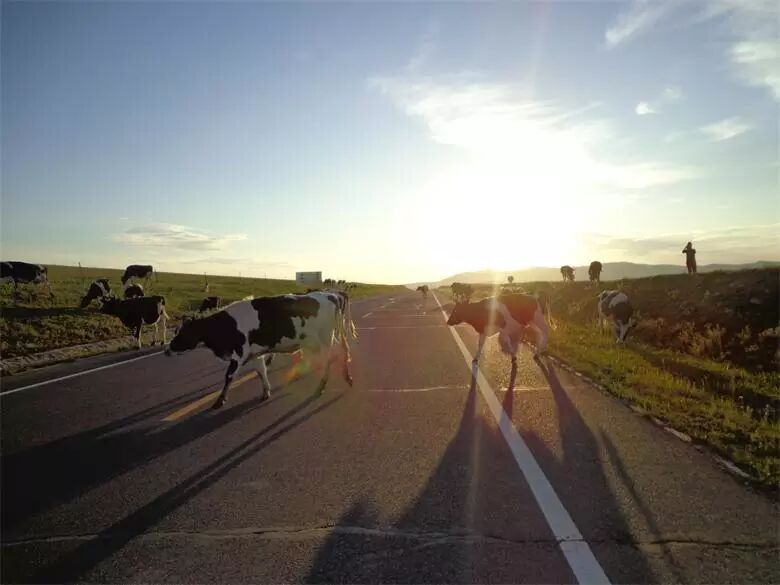 路上遇到的羊群,在这里开车,我们要给牛羊马让路,反正也过不去,下来照相。