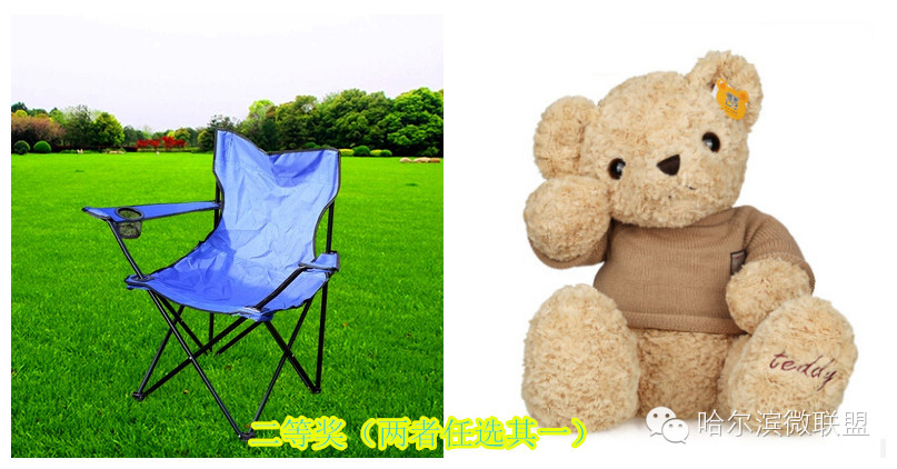二等奖:简易折叠椅一把、毛绒玩具一个(两者任选其一)