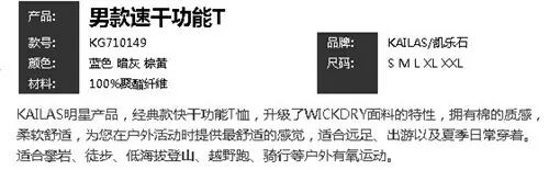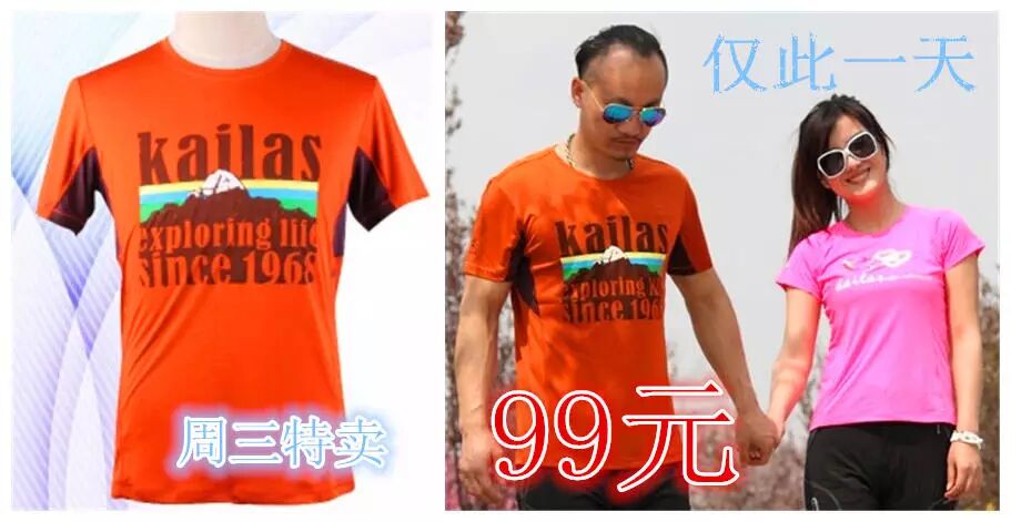 金祥8月20日周三特卖!凯乐石经典男款女款速干T恤99元!仅限一天!(男女款各一颜色) |