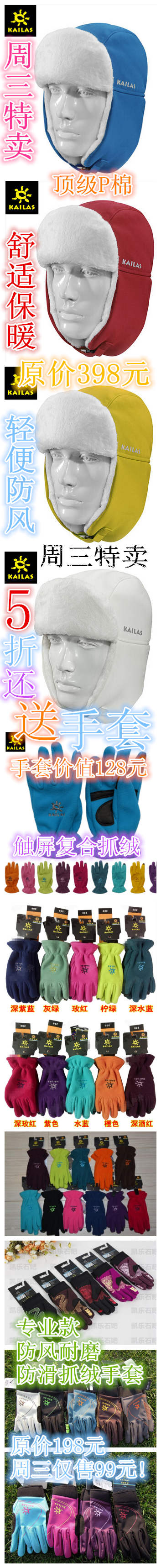 顶级超细绒柔软保暖,内部填充顶级PRIMALOFT棉,极度透气!防风保暖! 并且在潮湿的情况下拥有比羽绒更好的保暖效果! 独有的温度调节在大量出汗后也不会感觉湿闷! 是冬季日常使用和户外保暖的不二选择! http://mmbiz.qpic.cn/mmbiz/tCicicbdwRNHyoAiarzBrZv1ia4QfoTYXKo2LCr0wECaOqWQxF3T1mcc2e7KXVvMF7fh7fw5g8vrqgPX5fibJe7Cdpw/0 金祥户外12月10日周三特卖! 原价398的凯乐石新款防风护耳帽! 周三特卖199元! 还送凯乐石新款128元触屏保暖抓绒手套一副!! 仅限周三一天! http://mmbiz.qpic.cn/mmbiz/tCicicbdwRNHyoAiarzBrZv1ia4QfoTYXKo2DgjIdw0gviasQLlQ8SCqRP5ZB0Gofn0CckHG7xV8qzL20Nicp8IF6Sog/0 关于凯乐石防风护耳帽内层加的PrimaLoft棉的注解 PrimaLoft是极佳的微纤维保暖层。结合超细纤维及专利的特别处理程序,成就难以置信的柔软、质轻、及防泼水性。 PrimaLof吸水性为一般纤维的1/3, 在干燥时的保暖效果多14%, 在潮湿时的保暖度多24%。 1.防风透气快干效果优于羽绒。 2.近似羽绒的保暖度及可压缩性。 3.卓越的防泼水效果。 4.极佳的蓄温力。