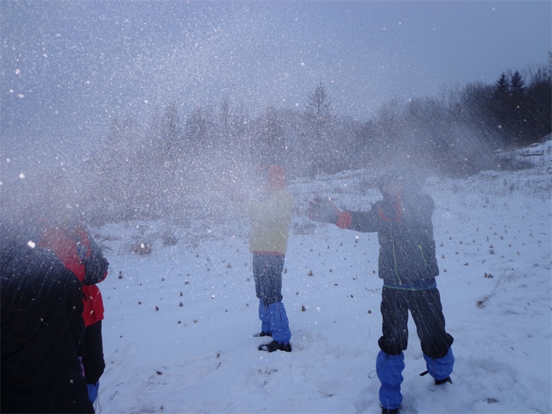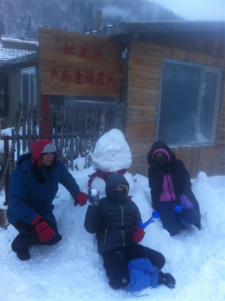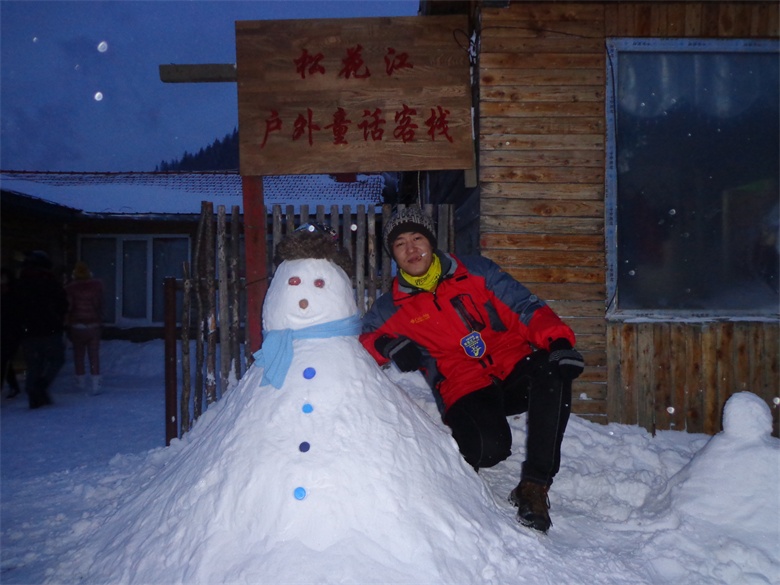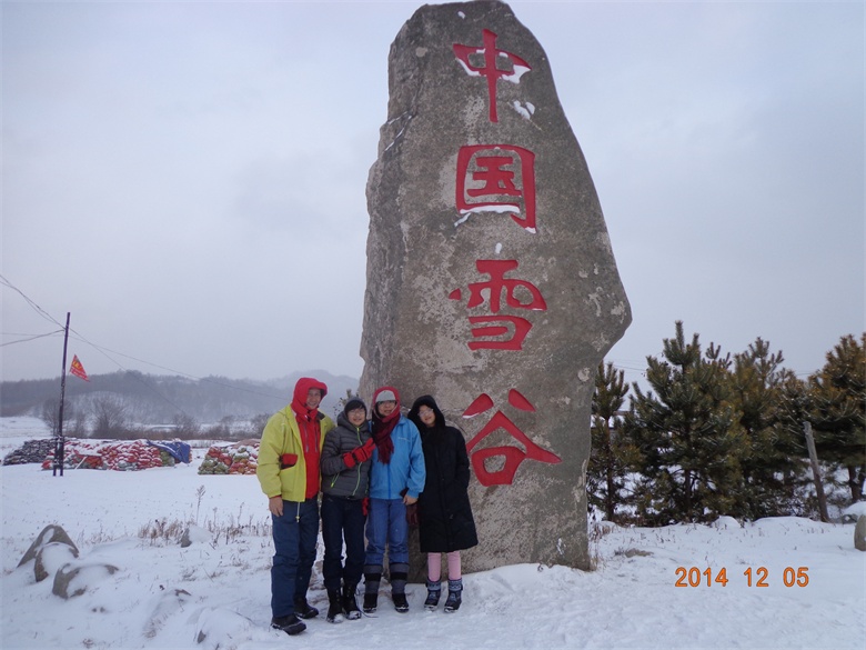 今年的雪来的晚了些,不过我们是幸运的,来到东北还是看到了大雪纷飞的场面。推荐装备--怎么厚怎么穿,把带来的衣服尽量都穿上。 晚上松花江户外俱乐部派车到机场接我们,让我们感到了东北人的热情。 晚上因为太冷,没有出宾馆,也是太晚了,早睡明天早上早出发。 第二天早上7:30出发,沿途经过了很多村庄,小城镇,中午在一个叫向阳的地方吃的午饭,4个人点菜,吃的酸菜饺子,没吃过,味道很好,30元钱一个人。 午餐后大约1个小时,到了雪谷大石碑