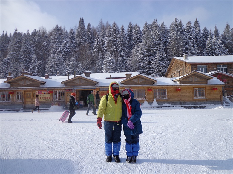 还有44公里就到雪谷了,这里的路很滑,一路的速度都不是很快。司机还是很有经验的,开的还是很平稳,之前还是有点担心,走了一会感觉就没什么了,真不愧是混“黑白两道”的,还以为司机是吹牛呢! 下午到了雪谷,这里叫东升林场,环境很自然,可能是远离城市,这里的雪很白,比我们刚来东北看到的雪白很多,也很自然。 我们住在农家里,火炕,听说要是住在炕头就会有种烙饼的赶脚,期待中…… 现在这里飘起了小雪,穿上雪套,出去走走 小山坡,我们叫它东山,能看到整个东升,有的房子冒起了炊烟,因为下雪,照片的效果不是很好 穿这么多还是感觉很冷。 来到这里怎么能不打打雪仗 雪地里躺会 这个东西叫雪圈,很有意思 雪下的有点大了,天也黑了,这里的天黑的很早,玩的有点累了,回去吃晚餐。 晚餐很丰盛,小鸡炖蘑菇,鸡蛋炒野菜(忘了叫什么名了)还有二代野猪肉,一共六个菜,光顾吃了,忘了消毒(照相) 晚餐后出去放了烟花 这里还有个小剧场,去看了二人转,感觉这些演员真的很不容易,基本功都很好。(钢圈套住两个人,然后要钻出来) 小伙子很搞笑,也很能喝。 晚上早点休息,为明天的穿越做准备! 今天的行程是比较辛苦的,考验了一个人的意志和体力,我们今天要穿越羊草山,前面5公里的缓坡,中间5公里有点陡,后5公里就是下山了,翻过羊草山就是雪乡。 来穿越的人很多,这里的雪很厚 树上都是雪挂,很美,领队说这样的景色也不是很常见,感觉自己很幸运。 走了10公里,山上有个小茶馆,休息了好久,真是体力不行,下山的时候选择了雪地摩托,也算是一种体验吧(给自己找了个多好的借口)