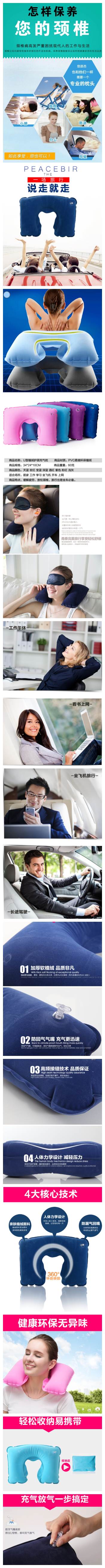 使用乘车枕的好处: 1、吹好气后垫在桌上伏案睡觉,胳臂不累睡得踏实。 2、套在颈脖上靠在座椅背上睡觉,脖子不酸睡得舒服。 3、不仅可以在旅途中使用,还可以在看电视时使用。 洗涤: 清水洗涤,勿用洗衣粉,勿拧,勿用洗衣机脱水。 适合人群: