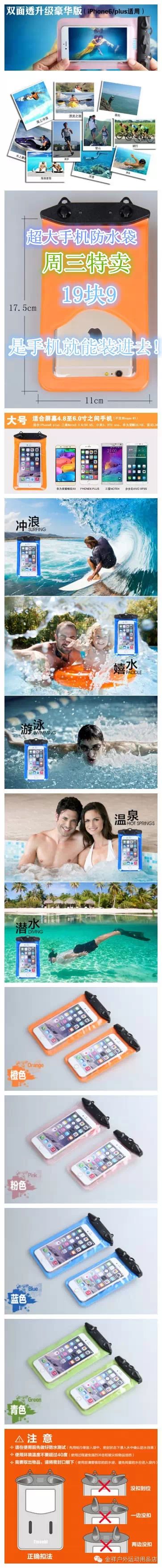 今日"520"周三特卖!夏季运动必备!漂流游泳防水防沙!手机防水袋19块9! |